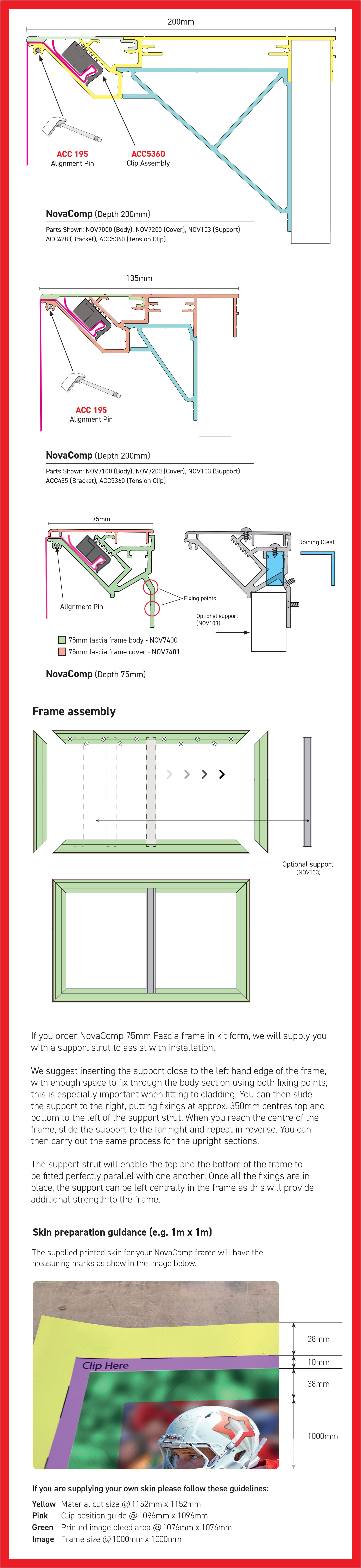 Available at three different depths, NovaComp can provide the solution to your illuminated and non-illuminated flex-face requirements. Tensioned using the black clip, NovaComp uniquely employs side support sections increasing the robustness of this system preventing any distortion. The 75mm fascia frame is a good alternative to folded trays as it is not only cost effective, but it eliminates the need for joins in the face. With two fixing points around its perimeter, the fascia frame can be fitted to any surface, including cladding. With the option to be supplied in kit form for assembly on the wall, or made up with supports and/or a back, installation couldn’t be simpler.